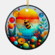 • This charming ceramic ornament colored glass abstract design captures a vibrant bee soaring over a colorful fantasy landscape.
