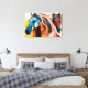 Expressive painting of two horses in vibrant colors! Dynamic brushstrokes in blue, orange, and red create movement and energy. Art perfect for home decor, fabric prints, and art prints. Conveys animal freedom and elegance in a modern and colorful style!