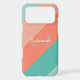 A colorful pastel green and orange diagonal striped phone case with template name and initial letter monogram is a idea for a new phone or special occasion gift. Personalize the text with a name and/or initials, remove any or all text or use the edit design tool to select a font style, size, and color you prefer.