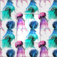 Colorful jellyfish watercolor illustration fabric