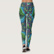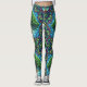 Colorful leggings featuring a vibrant, nature-inspired design with intricate leafy patterns and tree motifs. Bright blues, greens, and purples create an energetic vibe.