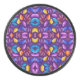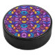 Colorful mandala design on a purple background hockey puck