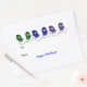 Three pairs of winter mittens in green, blue and purple accent this cute holiday sticker. Customize as desired.