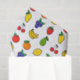 Bright and colorful mixed fruit pattern with lemons, pears, bananas, cherries, apples, blueberries, strawberries and oranges.