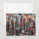 Colorful Mixed media Architecture and Bird Collage Postcard