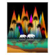 COLORFUL MOUNTAIN BEAR PALM TREES OCEAN POSTER
