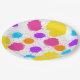Brighten up your next party with these modern colorful paint splattered paper plates colored with blue, pink, orange, yellow and purple.