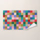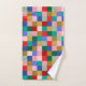 This bath towel set features a cheerful geometric patchwork design in vibrant holiday colors of red, green, pink, gold, and blue. Perfect for adding a festive touch to your bathroom or guest space during the Christmas season. The bold, modern pattern makes a great holiday gift or an easy way to refresh your home with cheerful winter color.