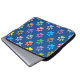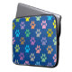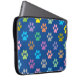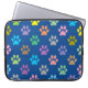 Colorful puppy paw prints pattern on blue background laptop sleeve