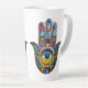 Colorful Petals Leaves Hamsa Sapphire Third Eye Latte Mug