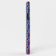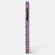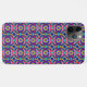 Colorful phone case featuring a vibrant geometric pattern in pink, blue, and yellow. Displayed from the back and side on a white background.