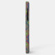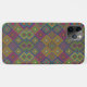 Colorful phone case with intricate geometric diamond pattern in vibrant shades of purple, green, and yellow. Visual focus on pattern complexity.