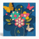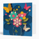 Colorful Pretty Modern Flowers Bouquet on Blue