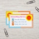 Cover features a colorful rectangle frame that is accentuated by a vertical colorful box with pacifiers inside. Here lies your prestigious name and all the contact details. Over at the top is the business name "Babysitting service" which you can change alongside a happy sun logo you can use.
