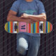 Colorful Serrate Stripes Pattern with Initial Skateboard