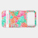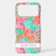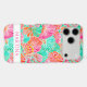 Customize this colorful coral and turquoise watercolor shell iPhone 17 pro max case with your your name in a trendy modern CAP font in pink on white. It's so modern and trendy!