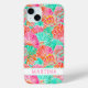 Customize this colorful coral and turquoise watercolor shell iPhone 15 plus case with your your name in a trendy modern CAP font in pink on white. It's so modern and trendy!