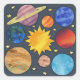 A bright, playful pattern featuring watercolor planets and stars on a dark background. Made to feel fun and full of cosmic energy.
