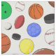 Here's some fabric designed with the sports fan in mind; it features a random pattern of baseballs, footballs, basketballs, tennis balls, bowling balls, soccer balls, golf balls, and hockey pucks.