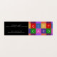 A fun and colourful design for use as a business gift certificate. This design has a colourful repeating patchwork pattern of squares of many colours on the front with the words Gift Card on it, a different letter for each square. The back is black with custom text for the business contact details. The inside has a company logo and details of the gift certificate, all able to be edited as required.