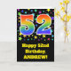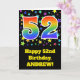 Colorful Stars + Rainbow Pattern "52" Birthday # Card