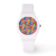 A beautiful, bright White Sporty Wristwatch, with a colorful pattern of strawberries, raspberries, oranges and limes on a deep blue leafy-textured background. Part of the Posh & Painterly 'Summer Fruits' collection, you can easily customize this Wristwatch by rotating or resizing the Summer Fruits pattern tile.
