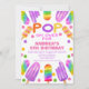 Colorful pop over birthday invitation featuring various color ice pop ice-cream and polka dots. This ice-cream girl's birthday invitation design is ideal for a summer birthday party.