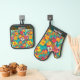 Colorful Tropical Flowers Pattern Oven Mitt & Pot Holder Set