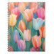 A stylish floral art design with a pattern of colorful pink, orange, peach and yellow tulip flowers. Whether you're looking for a gift for a friend or just want a new notebook for yourself, this is the perfect choice.