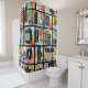 Colorful urban graffiti patchwork pattern shower curtain featuring bold abstract blocks, expressive brush strokes, scribbles, stars, and mixed-media textures in bright blue, yellow, pink, orange, and black. Energetic and edgy with a modern street art aesthetic, this seamless design is ideal for graffiti art lovers, maximalist style fans, creative teens, and contemporary art enthusiasts.