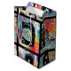 Colorful urban graffiti patchwork pattern gift bag featuring bold abstract blocks, expressive brush strokes, scribbles, stars, and mixed-media textures in bright blue, yellow, pink, orange, and black. Energetic and edgy with a modern street art aesthetic, this seamless design is ideal for graffiti art lovers, maximalist style fans, creative teens, and contemporary art enthusiasts.