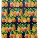Pineapple images in tones of gold, orange and green each have an individual textured pattern, and are grouped together on a dark navy blue background, making this shower curtain colorful and unique.