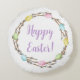 Colorful Watercolor Willow Wreath Happy Easter Round Pillow