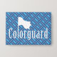 Colorguard text with a flag taking the place of the letter L is a fun colorguard design for marching band and winter indoor guard.