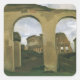 Vintage illustration architecture image featuring a famous landmark, the Colosseum in Rome, Italy. Artist: Jean-Baptiste Camille Corot. 1825. The Colosseum Seen through the Arcades of the Basilica of Constantine is a fine art realism painting featuring architectural elements, arches.