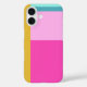 Modern geometric colour block pattern in aqua blue, hot pink, and sunshine yellow.