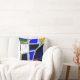 Bold contemporary abstract painting with bold colour blocks in a palette of blue, black, white, yellow and a touch or red . Bring some exciting, expressive pillow art into your home. A fun and stylish accent for modern or midcentury style homes. Customize the back colour and size to suit your interior decor. Original painting, "Diversion" by Leslie Newman.