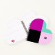 Contemporary, colourful and clear are the hallmarks of this eye-catching notebook. The front of this super-stylish notebook is divided into four sections in an attractive colour-block design. The sections are magenta, black, turquoise and pink, bringing a vibrant splash of colour to your everyday note-taking. The back of the notebook is a plain magenta pink. Personalize this chic and trendy cover with an initial, which will form a modern monogram on the top right of the design.