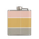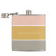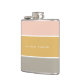 A stylish colour block flask with 3 horizontal stripes in blush pink, mustard gold and grey in a modern minimalist design style. The text can easily be customized with your name for the perfectly personalized gift or bar accessory!