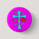 Colour blushing pink with red flowers blue cross 1 inch round button