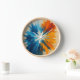 Make every moment vibrant with this modern wall clock featuring a stunning abstract splash of colour. The dynamic design blends cool blues with warm oranges and yellows, radiating from the centre like an explosion of creativity. Framed in natural wood and finished with minimalist white hands, this clock is both functional and artistic.