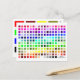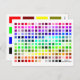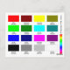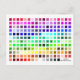 A colour chart using the standard Zazzle colours for fonts and backgrounds on the front side (it may seem like it's missing two colours, but two colours are actually repeated on the Zazzle colour selector). On the back side are the 16 Standard HTML colours and a rainbow strip of colour as well. I created this to see how the colours compare to those on my computer screen. Perhaps you will find it useful as well.