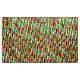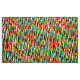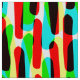 A design made up of three different layers of hand drawn dashed strokes in three different colours which interact with each other creating additional colours. This pattern can be made larger or smaller.