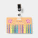 A generic horizontal student hall pass badge for art teachers featuring some colourful pens . . Personalize it with your name .