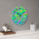 This is a multi-layered scribbly design in bright colours and soft airbrush lines based in a dreamy blue-green, for people who dream in colour! Trendy dynamic scribble pattern in colours of blue, yellow, pink and green, lively, spontaneous, artsy expression, for stocking stuffer, kitchen accessories, decor enhancement, a fun artsy accent everyone will love. Perk up any space with a lively burst of abstract expression. You can also upload your own photo instead of the current design if you want. Black numbers, choice of hand colour and clock style. Cheerful and colourful contemporary pop art, expressive art by Sylvia Rose.