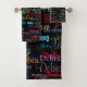 Colour Names Pattern on Black Bath Towel Set