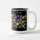 A colour pop of cute flowers on a black background - fun and cheerful. Personalize with your initials.