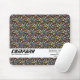 A business mouse pad template with a multi-colour abstract geometric design made up of squares and rectangles. Ready to be customized with your details.