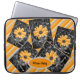Spring Flash African Daises are beautiful flowers. This 15" neoprene laptop sleeve is adorned with an multiple orange, ivory, grey and black framed close up photographs leaving the colour in the open orange daisy blossom and closed bud to stand out over the desaturated photo. An orange, ivory and grey diagonal striped design fills the background. The framed orange oval sets off your text. Fill in the template field with a name or initials or click Customize it! if you'd like to select a different font style, size and colour. In the upper right column Choose your options you can select the 10 or 13 inch sizes.