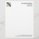 A business letterhead with an attractive motif or decorative logo made up of 16 squares in a pallet of 5 colours.